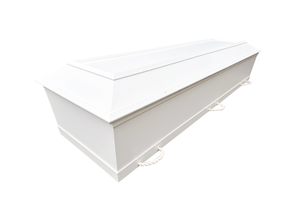 Du har mulighed for at vælge den klassiske hvide kiste. Her kan du vælge, om den skal være dekoreret med kors eller guirlander på siderne – eller om den skal være uden dekorationer. Som familie kan I også vælge at dekorere kisten med sommerfugle, tegne eller skrive på kisten. Vi er alle forskellige, så mærk efter, hvad der giver mening for dig og jer som familie.