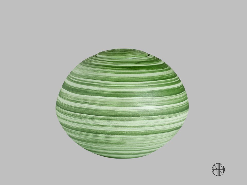 Urnen er lavet af rå ler. Dvs. rent jord og udelukkende med naturlige pigmenter som giver farven. I overfladebehandlingen er der anvendt bivoks.